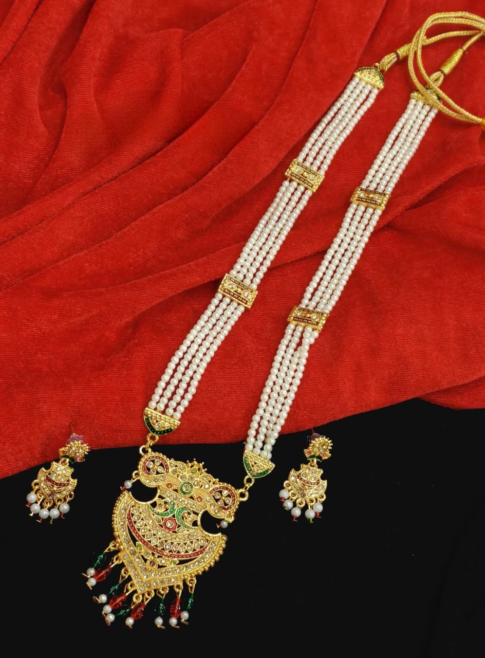 The Rajasthani Rani Haar with White Pearl is ideal for wedding parties, family ceremonies, pooja rituals, and Griha Pravesh functions. Whether worn by the bride or wedding family members, this necklace adds elegance, tradition, and cultural richness to every occasion.